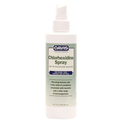 Our convenient and non-stinging 4% Chlorhexidine Spray can be applied directly where it’s needed for localized relief of hot spots, inflamed skin and insect bites. For dogs, cats, puppies and kittens.