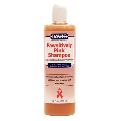 A portion of the proceeds from Davis Pawsitively Pink Shampoo will be donated to breast cancer awareness programs in honor of Cathy Davis, co-founder of Davis Manufacturing, and a three time breast cancer survivor.