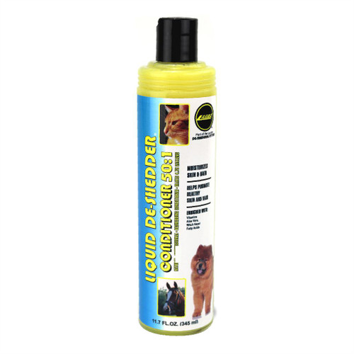 LIQUID DE-SHEDDER® CONDITIONER is a 50:1 maximum concentrate liquid silk conditioner. All natural, no degreasers or detergents! A non-greasy body building formula with silk protein along with essential fatty acids and vitamins to create the ultimate moisturizer and conditioner for both skin and hair. LIQUID DE-SHEDDER® CONDITIONER has UV protection and can be used as a leave in conditioner for light conditioning, static eliminator and sun protection. Great for groomers, show handlers and animal enthusiasts! LIQUID DE-SHEDDER® CONDITIONER is mild, pH balanced, natural, biodegradable and safe to use with flea control drops. Formulated for dogs, cats, rabbits, puppies, kittens, ferrets & farm animals.